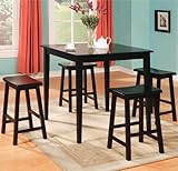 150291N Features: -Casual style.-Straight edges, clean lines, and square tapered legs.-Smooth tops with straight edges. Includes: -Includes counter height table and four stools.-Set includes 1 dining table and 4 chairs. Construction: -Constructed of wood solids and veneers. Color/Finish: -Black finish. Dimensions: -Dining table: 36'' H x 36'' W x 36'' D.-Bar stools: 24'' H x 17'' W x 13.5'' D.